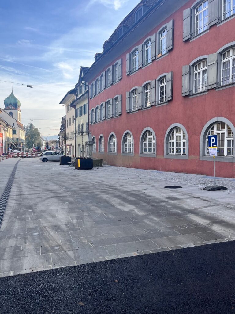 Parkplätze: Vor der Absperrung auf der rechten Seite, Parkhaus Migros (200 m entfernt), Parkplatz «Arche» der Reformierten Kirchgemeinde (max. 90 Minuten, 1 Min. zu Fuss) oder Parkplätze beim Bahnhof (3 Min. zu Fuss).